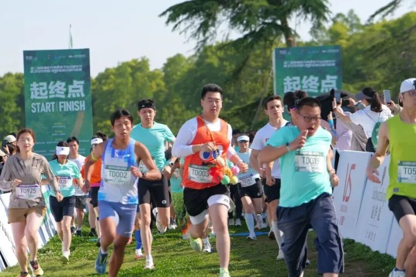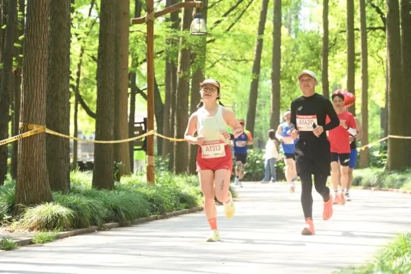 随着鸣笛声响,近万名跑者鱼贯而出。赛道蜿蜒于松涛幽谷、莫奈花园、桃花源、海棠林及潺潺溪流之间,脚下是松针铺就的软毯,耳畔是鸟鸣与风吟。“人在画中游”的野趣,让奔跑不再只是速度的较量,更是一场五感的唤醒。