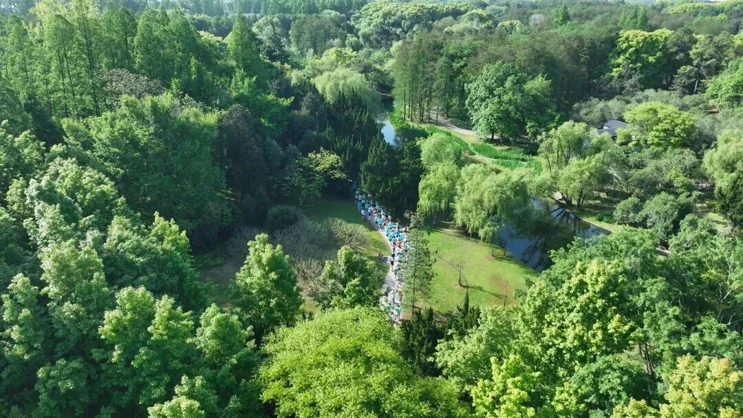 最美四月天,跑进森林里。4月26日清晨,上海共青森林公园化身一片流动的彩色海洋——第二届杨浦区“共青春”亲子运动嘉年华暨2026易跑·绿野谧境丛林穿越赛鸣笛开跑。